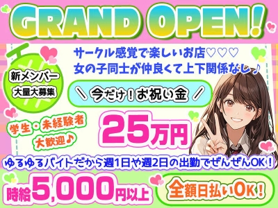 グランドオープン!学生さん・未経験者大募集♪即体験入店可能です!時給5000円~全額日払いOK !