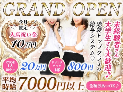 GRAND OPEN♪今月の採用で今月限定入店祝い金【10万円支給】時給5000円~全額日払いOK♪